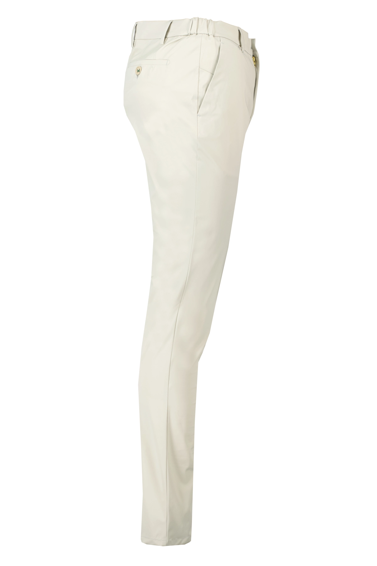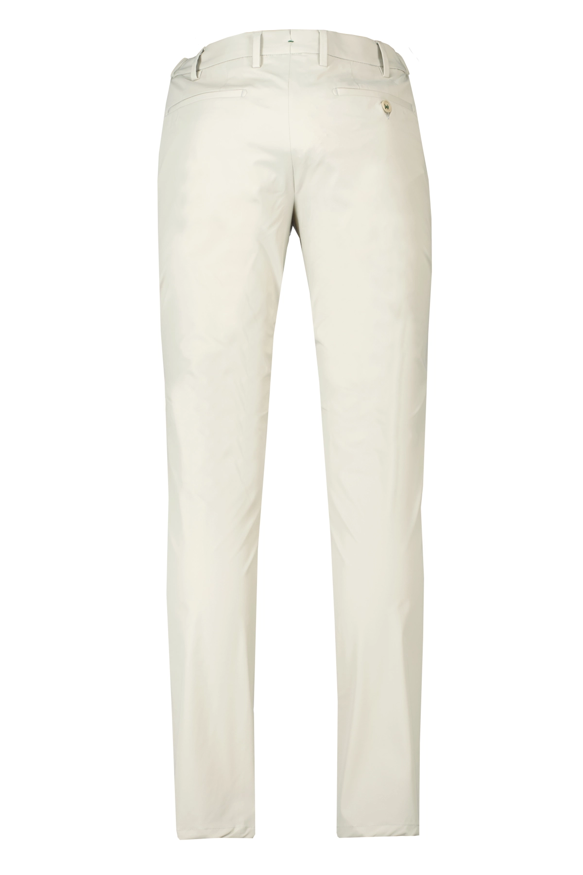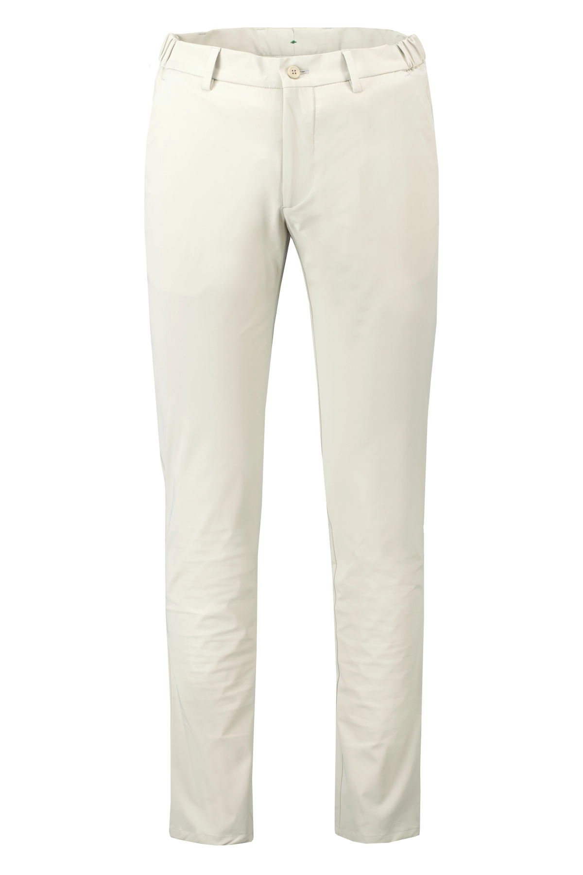 Deze broek heeft een knoop en ritssluiting, twee steekzakken, twee achterzakken en een elastische tailleband.