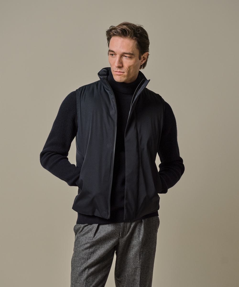 Deze technische bodywarmer is gemaakt van een luxe waterafstotende en winddichte stof met stretch voor extra comfort, magnetische knopen als sluiting over de ritssluiting, en een two-way zipper ritssluiting voor extra comfort