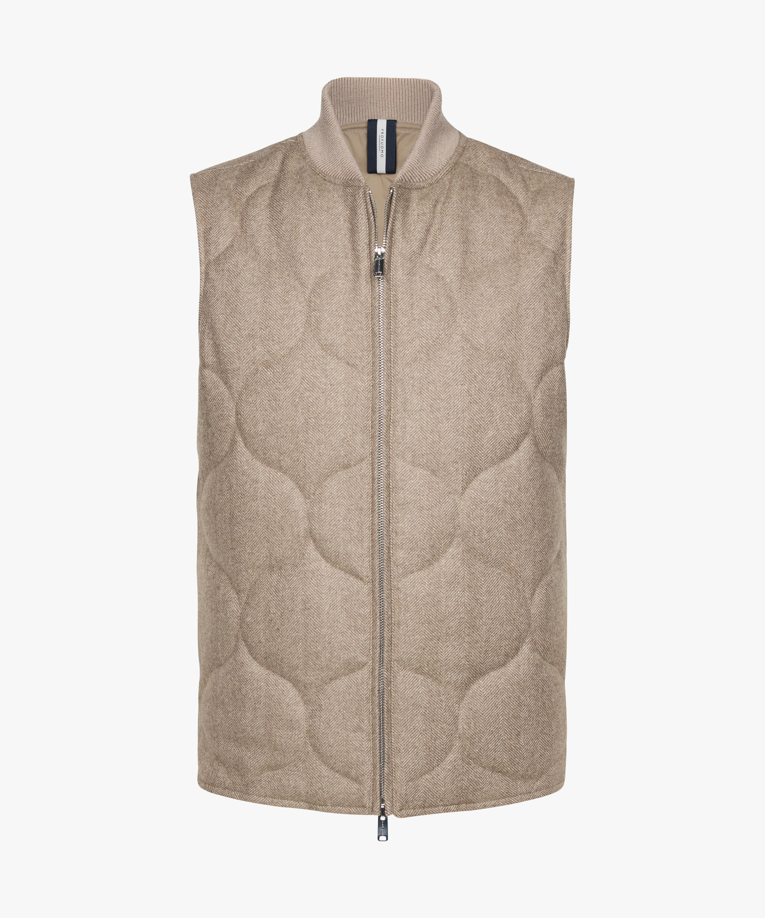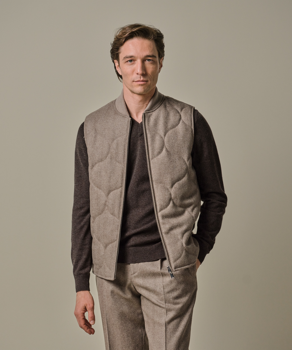 Deze wollen bodywarmer is perfect voor zowel een formele als smart casual look, gemaakt van hoogwaardige Italiaanse wol met een quilted afwerking, licht gevoerd en afgewerkt met een ritssluiting voor een moderne, verfijnde uitstraling