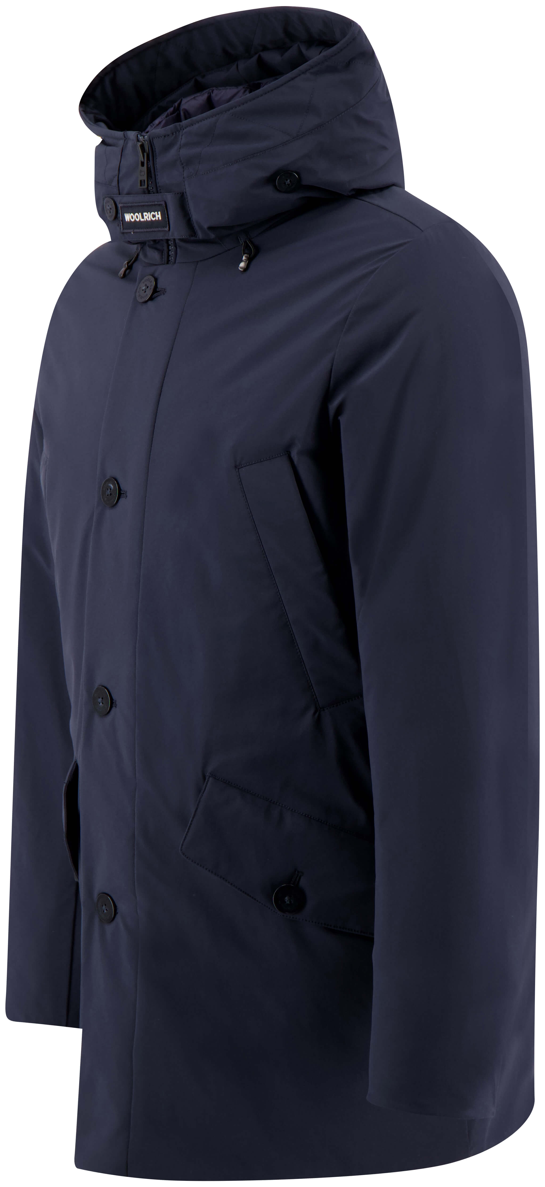 De Stretch Artic Parka in diepblauw combineert een strakke, moderne uitstraling met hoogwaardige functionaliteit. De capuchon voegt een opvallend designelement toe dat zowel bescherming als stijl biedt, terwijl licht gebogen schouders een dynamisch silhouet creëren. Zorgvuldig afgewerkte naden, subtiel geïntegreerde ritssluiting en knopen benadrukken de minimalistische, verfijnde afwerking.